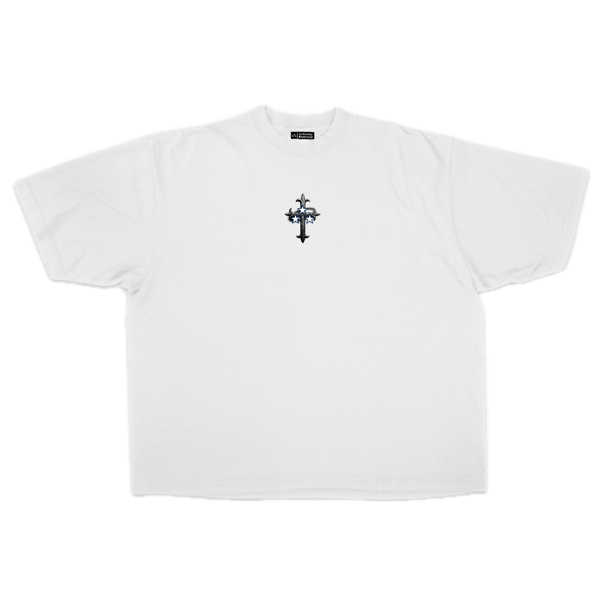 On the front, a centered cross is adorned with three iconic stars—a symbol of divine and personal alignment. The stars represent both the Mind, Body, and Soul, and the Father, Son, and Holy Spirit—a reminder to stay rooted in purpose, power, and presence.